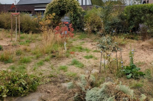 Ziemlich braun und unansehnlich inzwischen… kaum noch Blüten – als ich das Beet angelegt habe, gab es grad keine Astern. Die hab ich erst später…