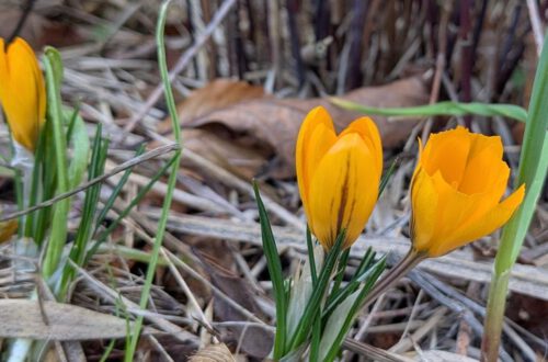 In Gütersloh blüht alles immer schon 2 Wochen früher als bei uns, darum freue ich mich sehr über die ersten bunten Flecken hier im Garten.