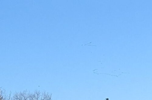 Die Flecken im Himmel sind Kraniche. eine lange Liste diesmal, mal sehen, was ich davon schaffe: Trittsteine freikratzen Moorbeet freizupfen Nematoden gießen Schmetterlingsflieder raus Jasmin…