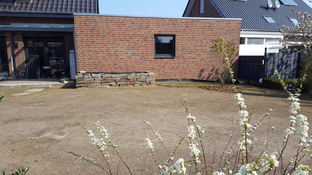 Anmerkung nach 3 Jahren: bei Neuanlage gleich innen rein einen Mäuseschutz legen lassen – sonst wundert man sich irgendwann, wenn es beim Gießen seitlich zwischen den Steinen in Strömen wieder rausläuft. Mäuse mögen es halt auch gerne warm.