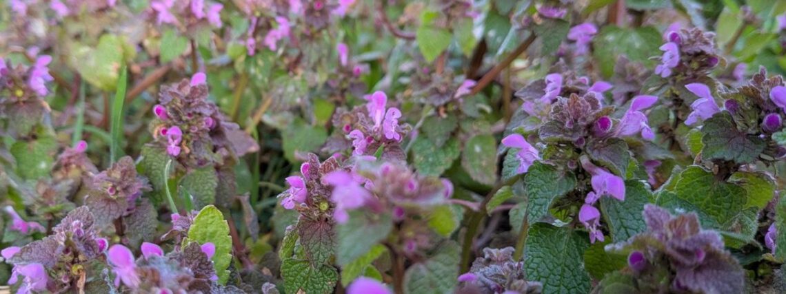 Purpurrote Taubnessel – die hat sich sehr ausgebreitet auf dem totgefressenen Gras. Gefällt mir – und den ganzen Hummeln, die sich dort tummeln.